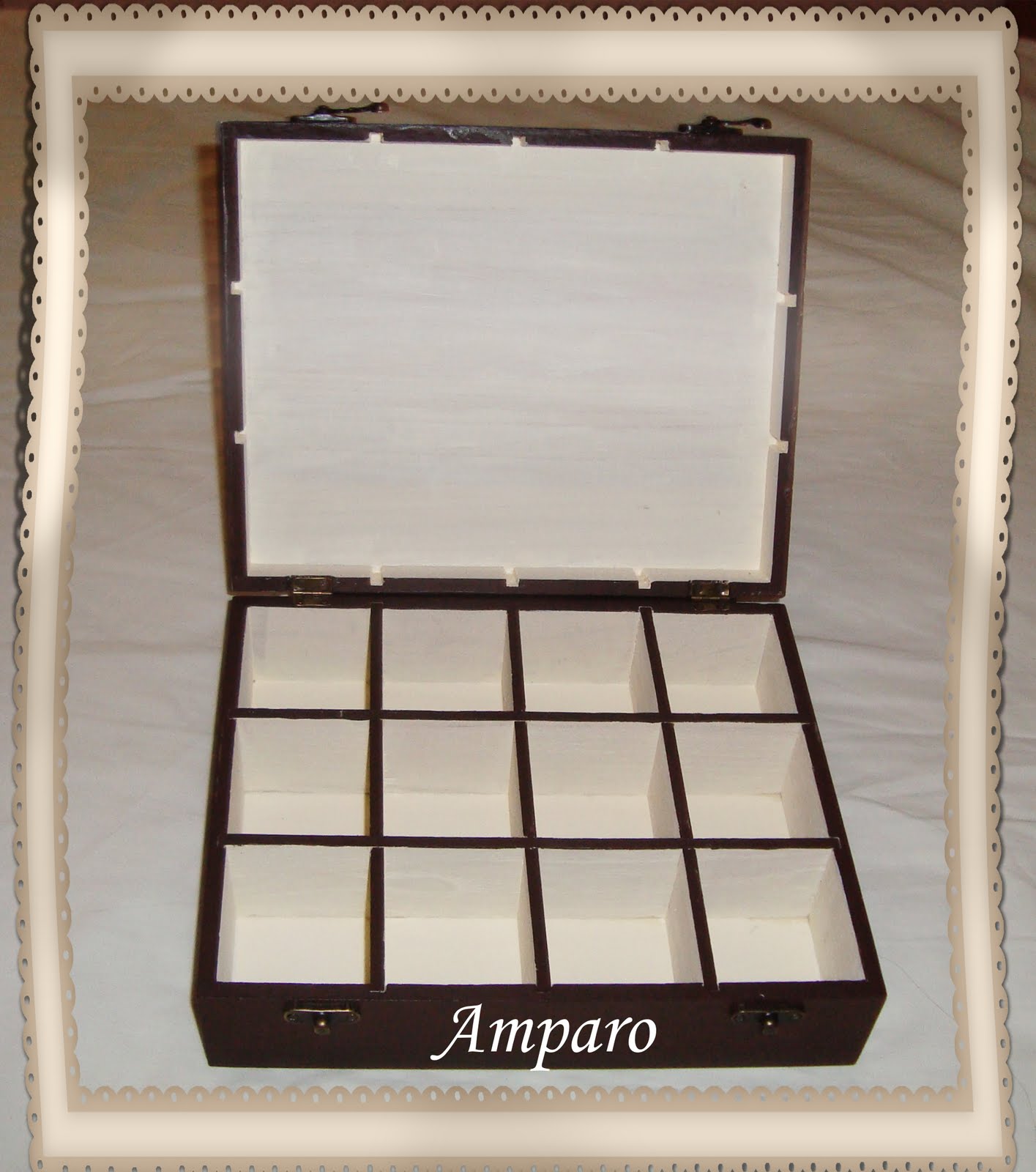Hola Amiga Amparo, pero que arte y buen gusto para decorar tienes, esta requetebonita la caja, y con sus compartimentos y todo. Felicidades y que tengas un buen fin de semana. Besos